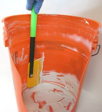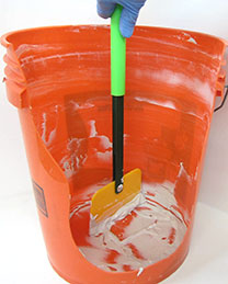 The Sidewinder Bucket Scraper removing poly ink from a bucket.